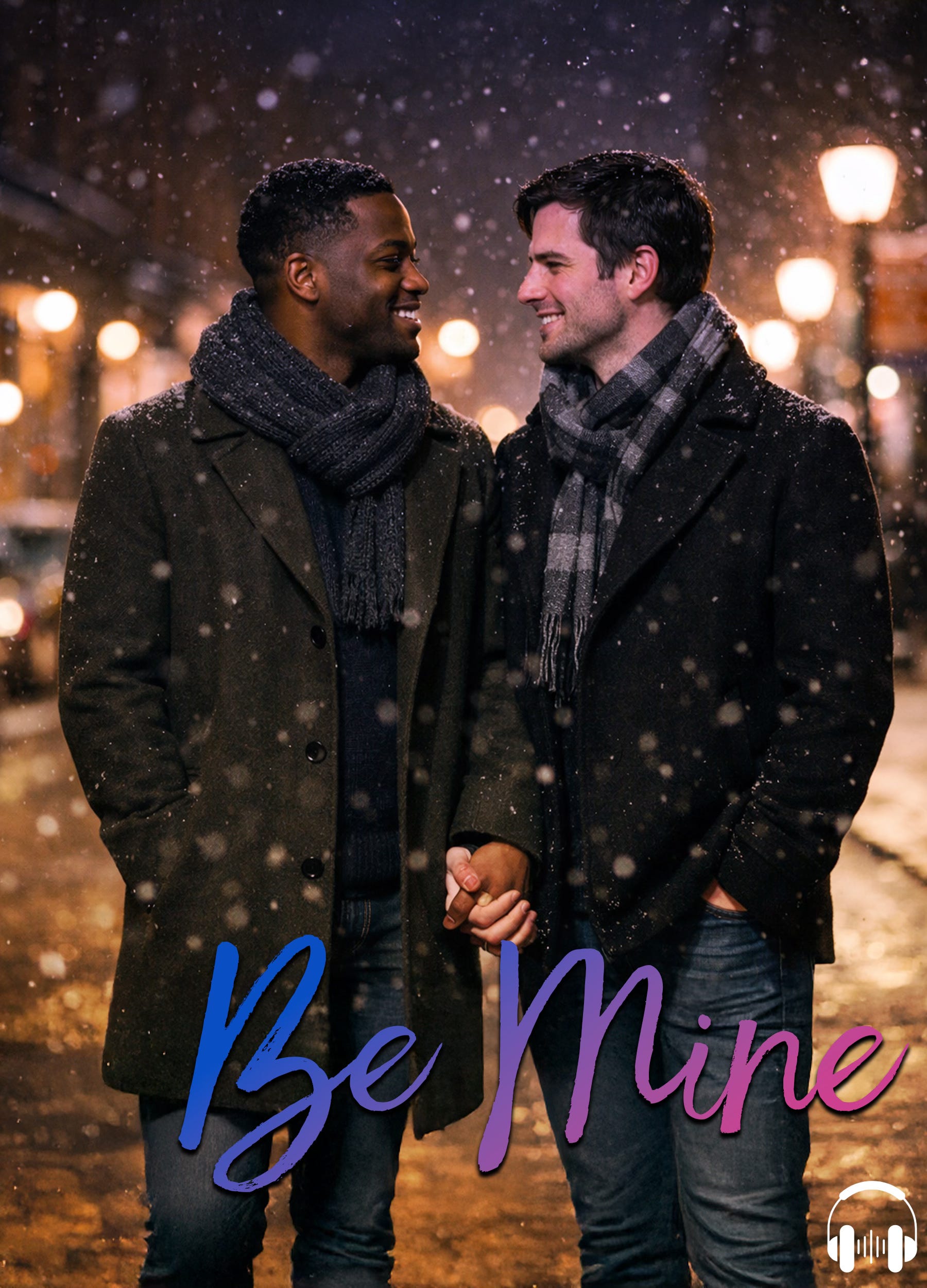 We step outside together. The cold hits first, then the snow—soft flurries drifting down like the city decided to lean into the cliché.